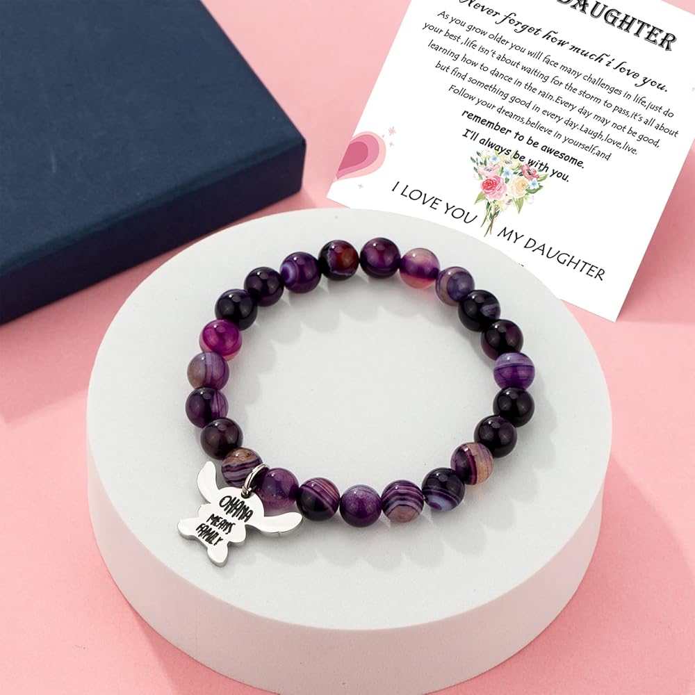Daughter Stitch Gifts from Mom Dad - The stitch shape bracelet perfect gifts for daughter, comes with a gift box. Sending the ohana stitch bracelet as a gift to express your good wish.