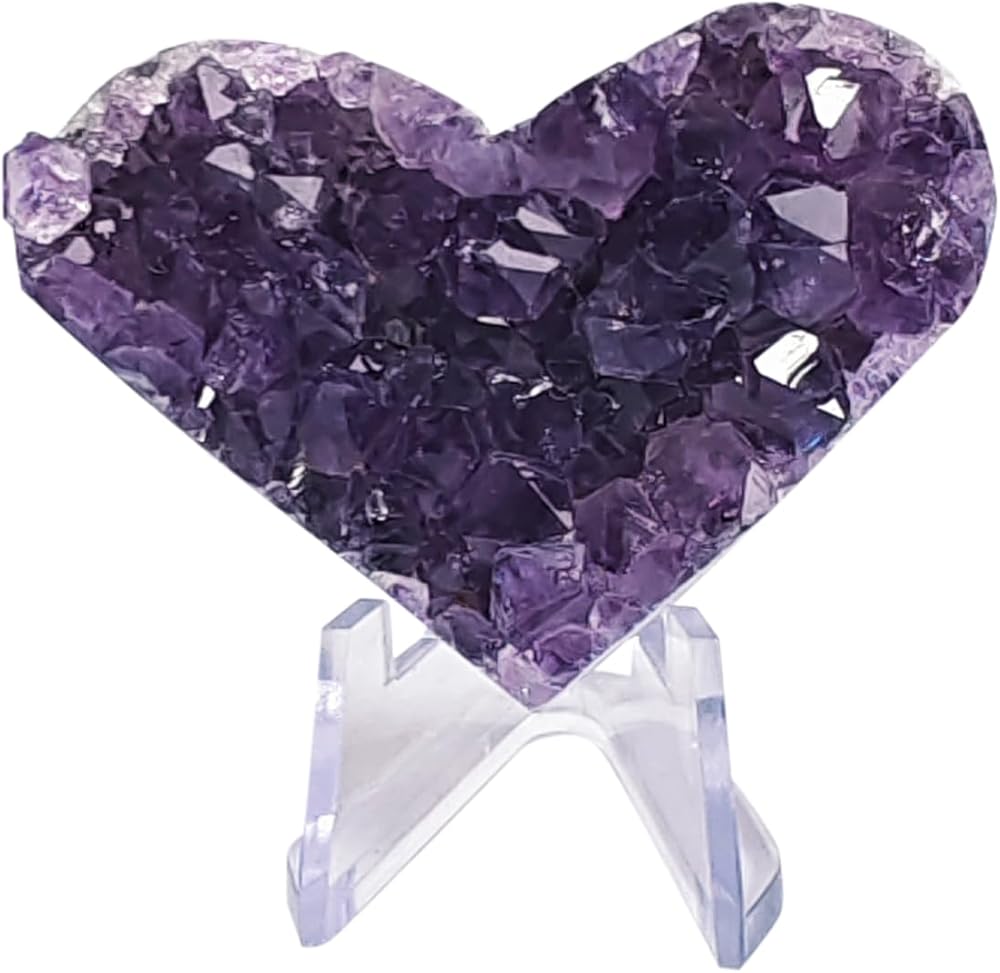 Crystals and Healing Stones Heart Crystal Amethyst Cluster Geode Raw Stones with Display Stand for Home Decor, Meditation, Spiritual Energy, 1Pc 2.34"-2.75"