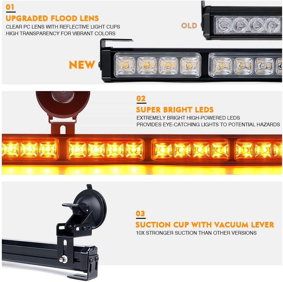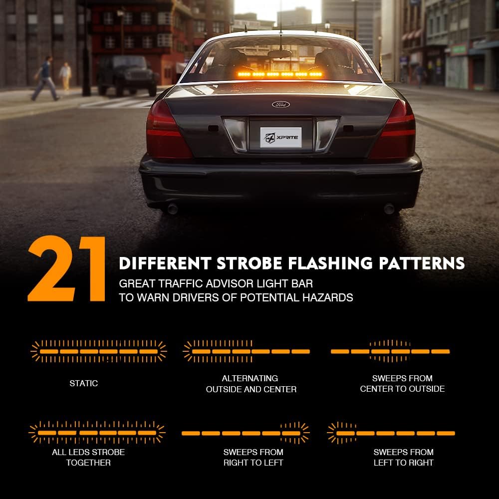 Xprite 27 Inch Amber LED Emergency Traffic Advisor Strobe Light Bar, 21 Flashing Patterns w/Suction Cup Mount, Windshield Deck Caution Warning Hazard Safety Lightbar for Construction Vehicles Trucks