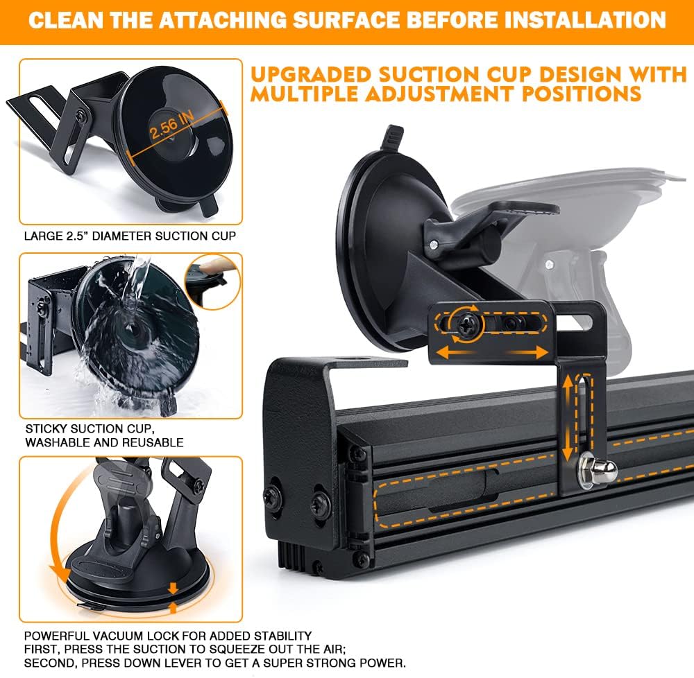 EASY INSTALLATION: Mounts with 'L' brackets on the ends, hardware is included. Also comes with 2 strong suction cups that firmly mounts on your windshield.