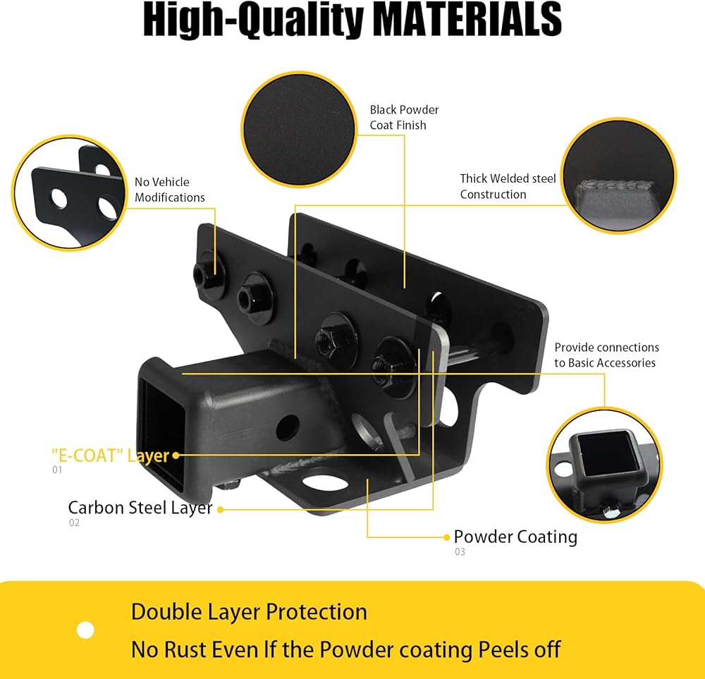 Easy Installation: the trailer hitch is easy to install, it utilizes a direct bolt-on installation method, seamlessly connecting to your vehicle's existing structure. No other modifications or tools are required. Allowing you to complete the installation in no time.