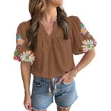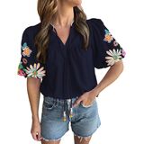 ☆Design:The mexican embroidered tops for women more distinctive,V Neck,short sleeve,casual,Floral.Unique floral embroidered puff short sleeve to shape the perfect outline of your arms.Short Sleeve Shirts for Women,embroidered tops for women,Loose Fit,Womens Tunic Tops,Ruffle Sleeve Tops for Women,Cute and Casual Shirts for Women,Boho Shirts for Women,Trendy and Fashion Summer Tops for Women,Ladies Tops and Blouses.The retro and fashionable shirt is suitable for all women to wear.