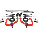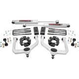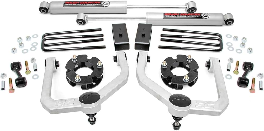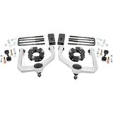 Rough Country's 3" Bolt-On Kit offers easy installation and aggressive good looks at an incredible value. Take your truck to new heights with this excellent option for standard Titan pickups. This kit features a set of high-quality, tubular Upper Control Arms designed to make alignment adjustments easier and Clevite rubber bushings for enhanced durability. These arms are designed to promote a factory-like geometry by keeping the ball joint at optimum angles after lifting. This design allows for an improved, greater range of motion from the ball-joint, with less stress, wear and tear. Also included are a set of durable strut spacers and fabricated rear blocks to provide lift height from front to rear. Once installed, this kit gives your truck plenty of ride height for up to 33" tires while offering a clean, level look from front to rear. This all-inclusive kit comes with everything you need, and installation is a piece of cake compared to other kits on the market! Featuring a 100% bolt-on installation process that requires zero cutting or drilling, this kit can be installed using common tools in a home garage, and allows the truck to be returned to stock at any time if so desired. Best of all this kit features Rough Country's Lifetime Replacement Warranty.