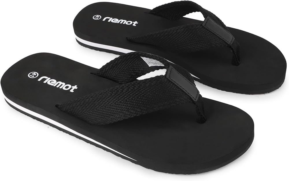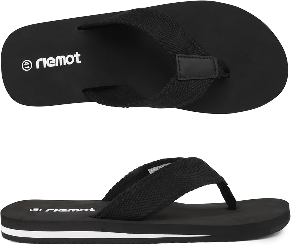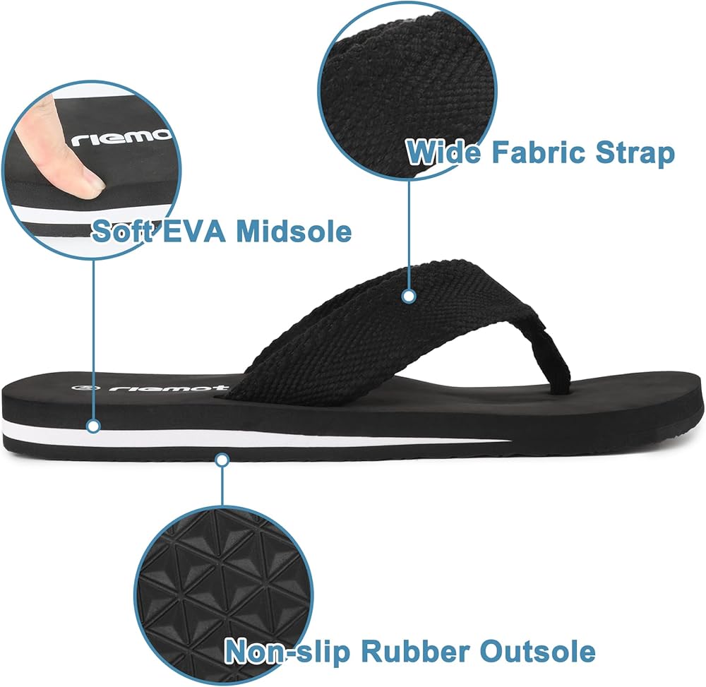 Premium Material: riemot mens flip flops have a soft webbing to prevent blister, a cushioned EVA midsole to relieve foot pains and enhance comfort and a non-slip rubber outsole to prevent falling.
