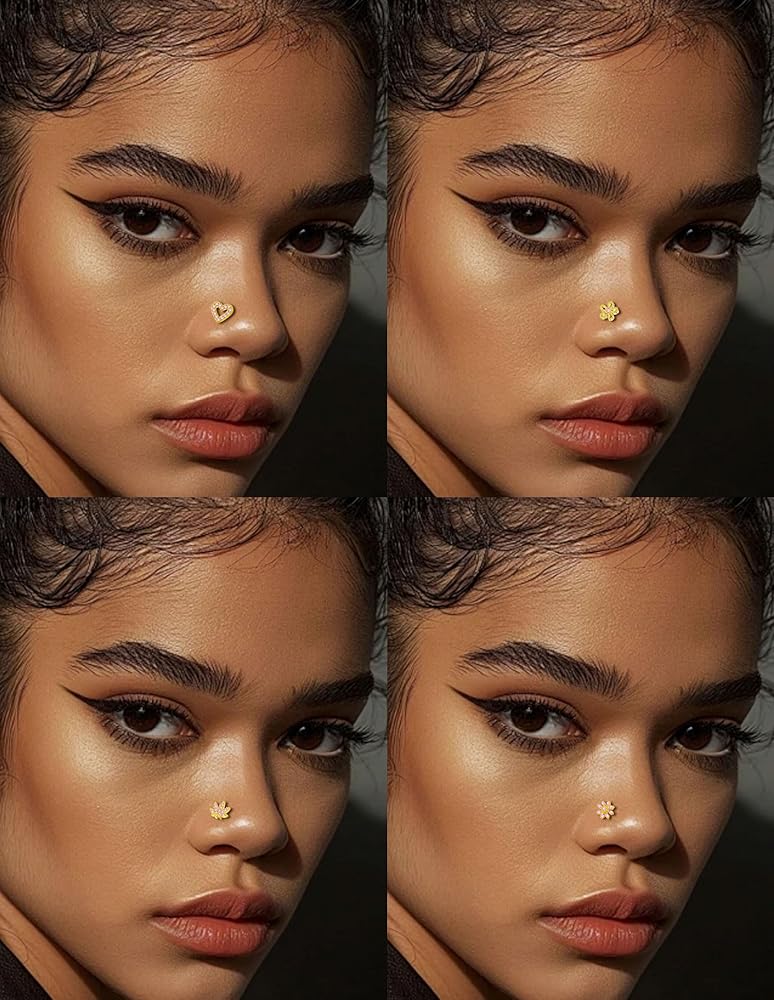 Package Include: Totally 16pcs L Shaped Nose Studs All in Different Style Including Heart Nose Ring, Star, Butterfly Nose Ring, Moon, Dangel Chain, Flower Nose Ring, Maple Leaf and More Other Styles, You can Choose Your Favorite One to Dress up Your Daily Look