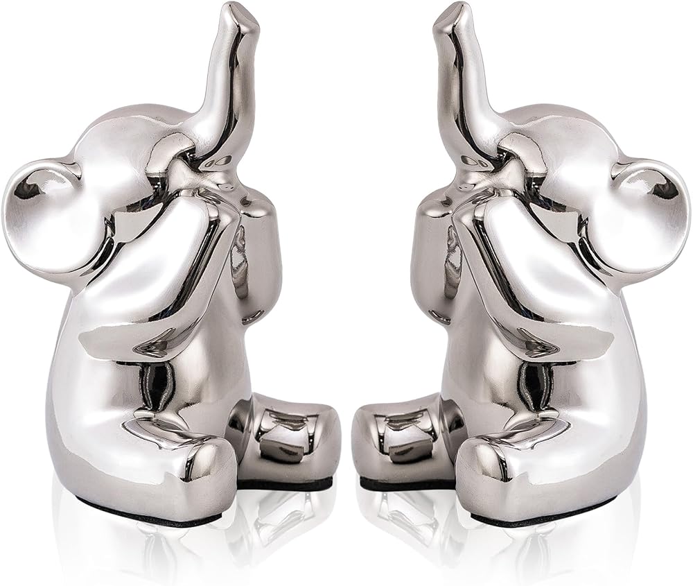 Compact and Chic Design: Measuring 4.13 x 2.17 x 2.56 inches, these small elephant statues are perfectly sized to fit into various decor settings. Their compact design makes them a great choice for small wall decor or as silver desk accessories, adding a touch of sophistication to any space.