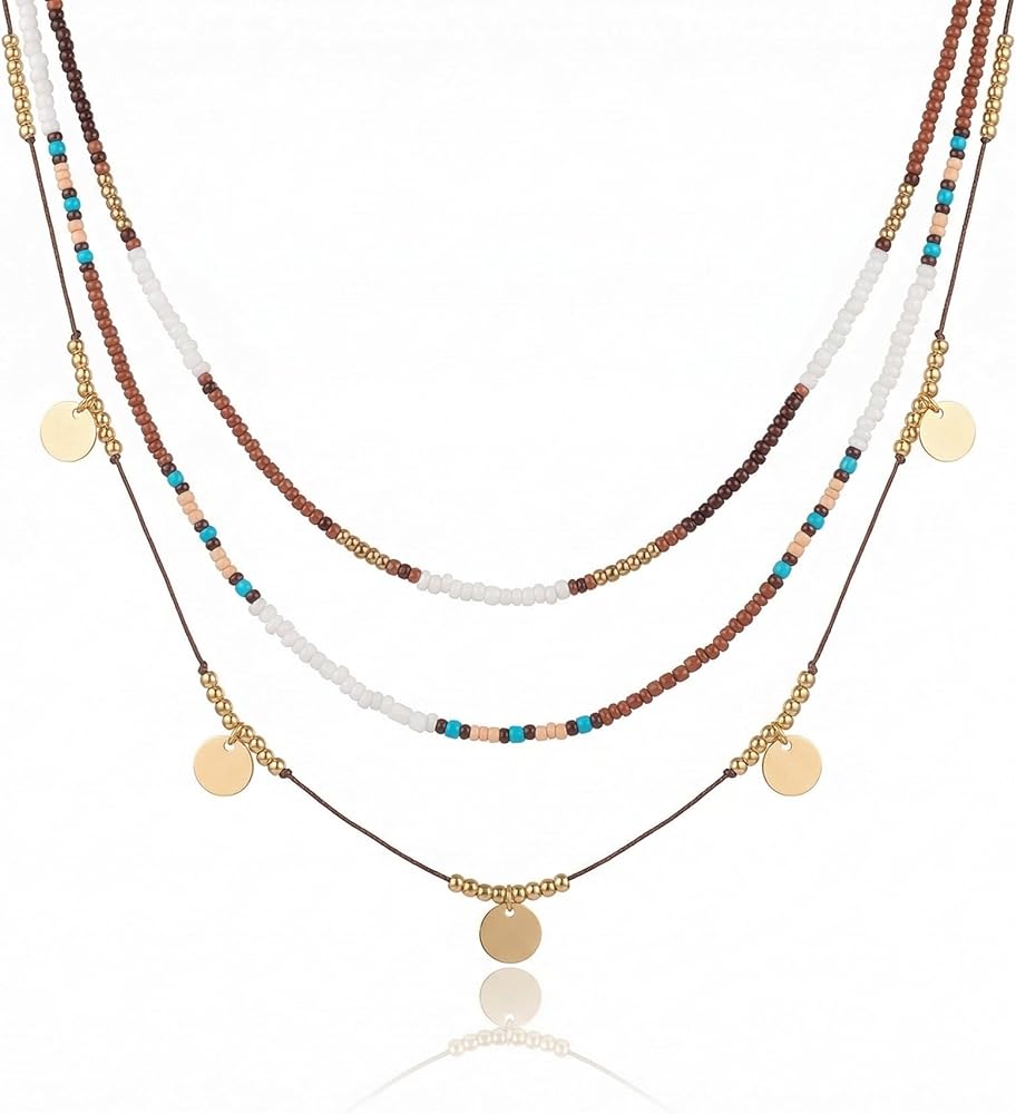 Bohemian Beaded Necklace: Embrace the free-spirited vibe with this beautifully crafted beaded choker necklace, perfect for adding a touch of bohemian charm to any summer outfit.