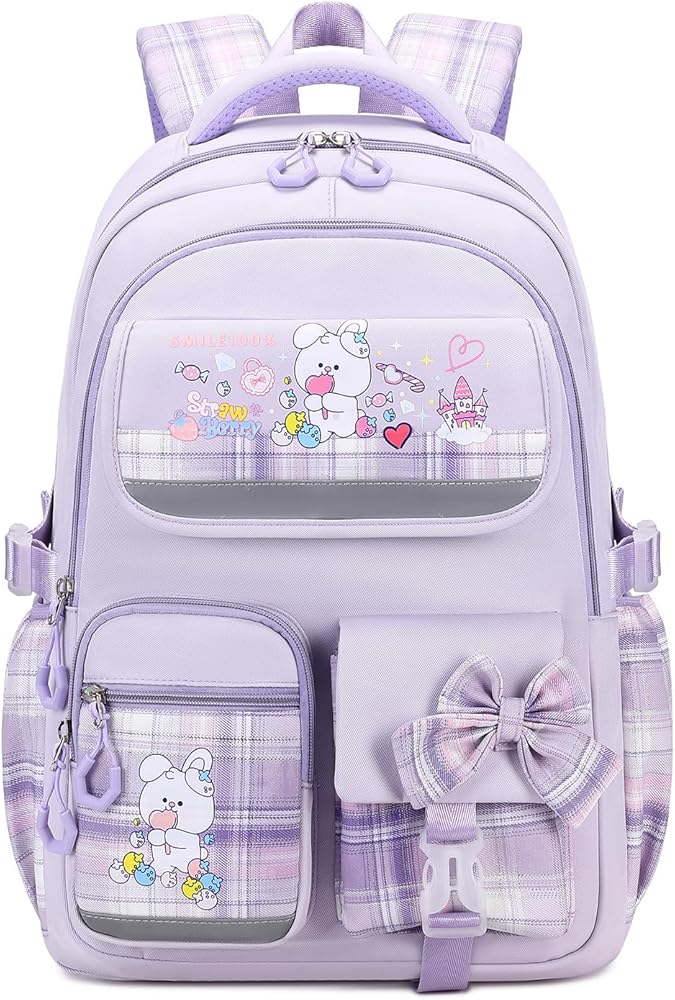 SCHOOLl BACKPACK FOR GIRLS:This cute blue backpack combines bow and checkerboard pattern with dreamy bright colors to realize girls' princess dreams. Cute accessories and multi-pocket design will attract their attention and let them enjoy their school time.