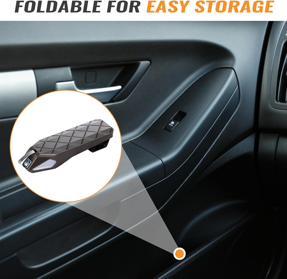Foldable and Portable: The innovative foldable design allows you to effortlessly stow this compact and exquisitely crafted car door step in your vehicle's storage compartment or hang it conveniently on the window handle. When collapsed, it occupies a mere 27.5 cubic inches of space