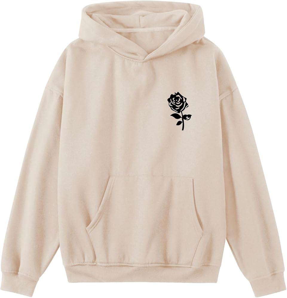 【Loose Fit Hoodie】 Oversized Hoodie Men, Long Sleeve Sweatshirt, Rose Hoodie, Trendy Hoodies,Drop Shoulder Hooded Jacket, Kangaroo Pocket Pullover With Ribbed Cuffs.