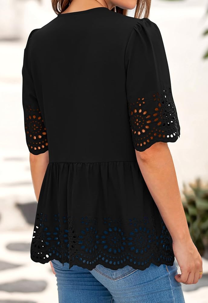 Material: Eyelet Tops For Women Made Of 100%Cotton, Which Is Soft, Skin Friendly And Lightweight. The Loose Version Lets You Feel Free, Make You Feel Comfortable Throughout The Day. Perfect For Hot Summer Days