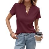 Chic V-Neck Design: The refined V-neck adds a touch of sophistication, making this short sleeve top versatile enough for business casual settings, daily wear, or trendy outings. Whether you're in a meeting or relaxing during a coffee break, it effortlessly elevates your style