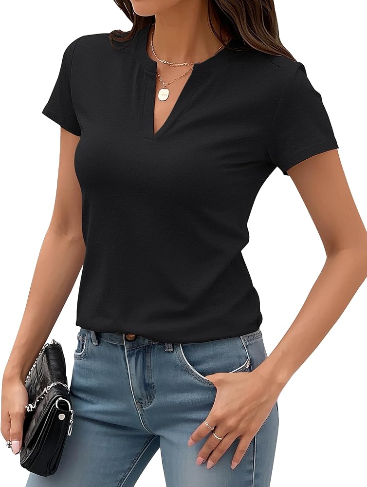 Effortless Styling: Designed with simplicity and thoughtful details, this v neck t shirts pairs seamlessly with pants, shorts, or skirts. It's a go-to piece for business, travel, or casual outings, offering endless outfit possibilities