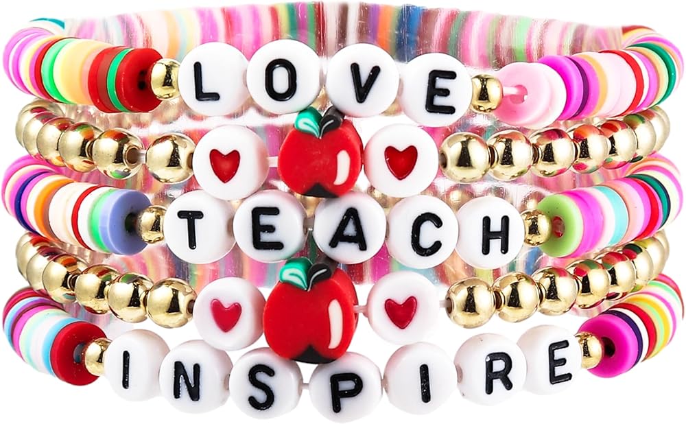 💕 Teacher Bracelet 💕: This bracelet fits the style of the teacher theme. This stackable hand-made polymer clay bracelet is engraved with the words TEACH, LOVE and INSPIRE. This is the perfect gift for a teacher in recognition of her hard work and dedication to her students.