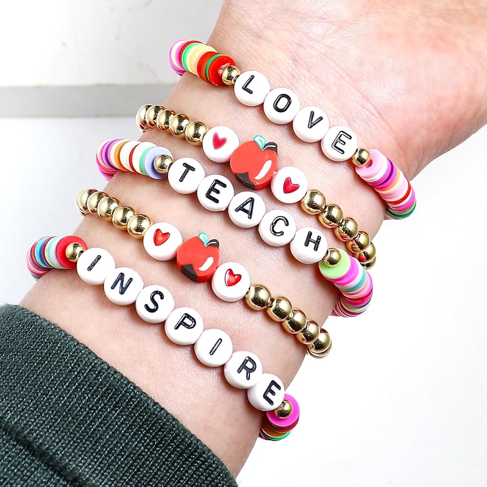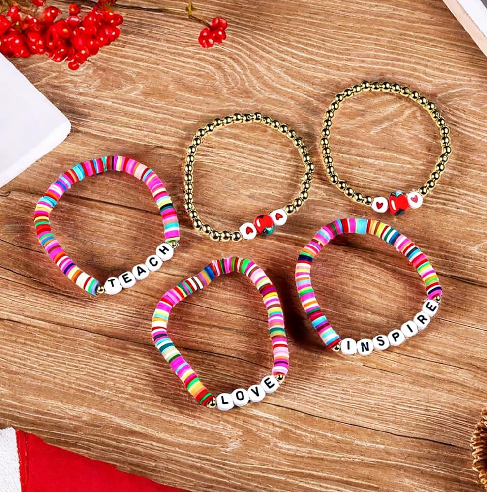 💕 Gifts Choices 💕: Clay bead bracelet is a perfect teacher Christmas gift or teacher appreciation gift. This bracelet is special for school educator, tutor, kindergarten teacher or preschool. This for woman can be the best option to gift in holidays.