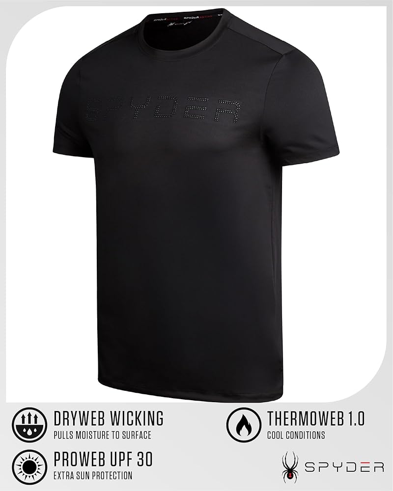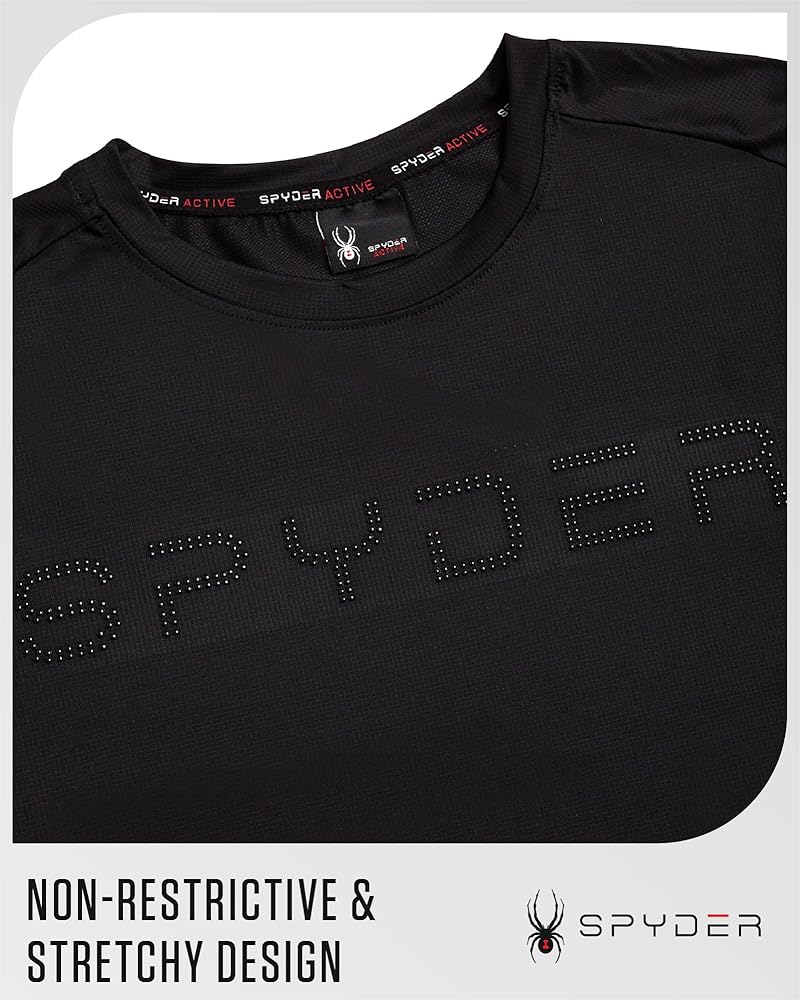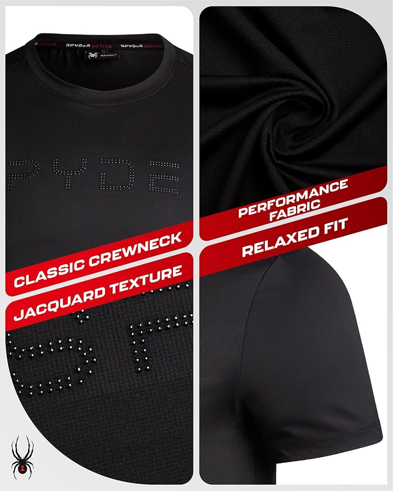 Built for movement, designed for performance-this Spyder men's workout shirt delivers the great combination of comfort, function, and style. Whether you're powering through a tough gym session, heading out for a run, or keeping it casual on the weekend, this dri fit shirt for men keeps you feeling fresh and confident all day long. Made with a lightweight poly/spandex jacquard jersey, this men's short sleeve shirt wicks away sweat and dries quickly to keep you cool even when the heat is on. The breathable construction allows for better airflow, making it a go-to choice for training, sports, or any high-intensity activity. No more dealing with heavy, sticky fabric-this gym shirt for men ensures maximum comfort when you need it most. Designed for an athletic fit, this men's activewear essential provides the great balance between mobility and structure. The stretchy fabric moves with you, giving you the flexibility you need to push harder without restriction. Whether you're lifting, sprinting, or simply going about your day, the crew neck and short sleeve design keep things classic while ensuring a comfortable fit that won't bunch or ride up. Built for durability, this workout shirt for men holds its shape, resists shrinking, and keeps its color wash after wash. The textured jacquard fabric not only looks sleek but also provides an upgraded feel compared to ordinary workout shirts. Wear it to the gym, pair it with your favorite athletic shorts, or throw it on for a casual, sporty look-this men's gym shirt is ready for anything. From workouts to weekends, this Spyder men's short sleeve shirt is the ultimate choice for guys who demand performance-driven style. Designed with over 40 years of research in the science of speed, it's time to upgrade your gear with a shirt that works as hard as you do.