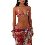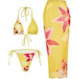 Women's 3 Piece Floral Swimsuit Halter Triangle String Bikini with Bodycon Beach Skirts Cover Up