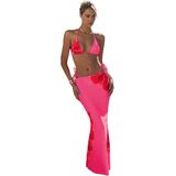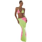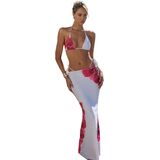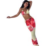 - Two piece swimsuit for women, floral print, halter neck, wireless, backless, high cut, tie side, triangle, slim fit, boho