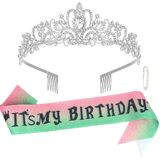 BEAUTIFUL & ELEGANT: Silver crystal princess crown and glitter It's My Birthday sash will make you the center of attention on your special day. It's the perfect finishing touch for your birthday look and make you more glamorous. Enjoy the compliments it will bring you at the party