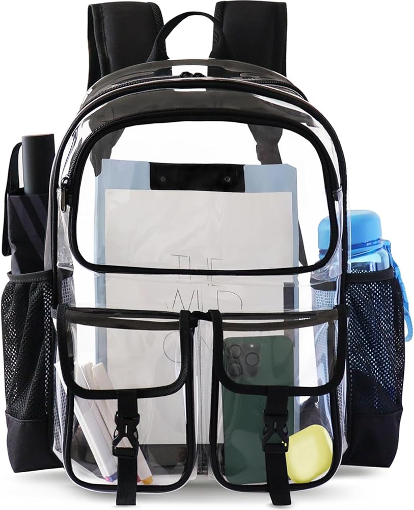 Padded Straps : The shoulder straps on our clear book bag are wider than standard, padded, and reinforced with double cross-stitching. Perfect for kids, teens, men, and women, this XL school backpack is a daily companion