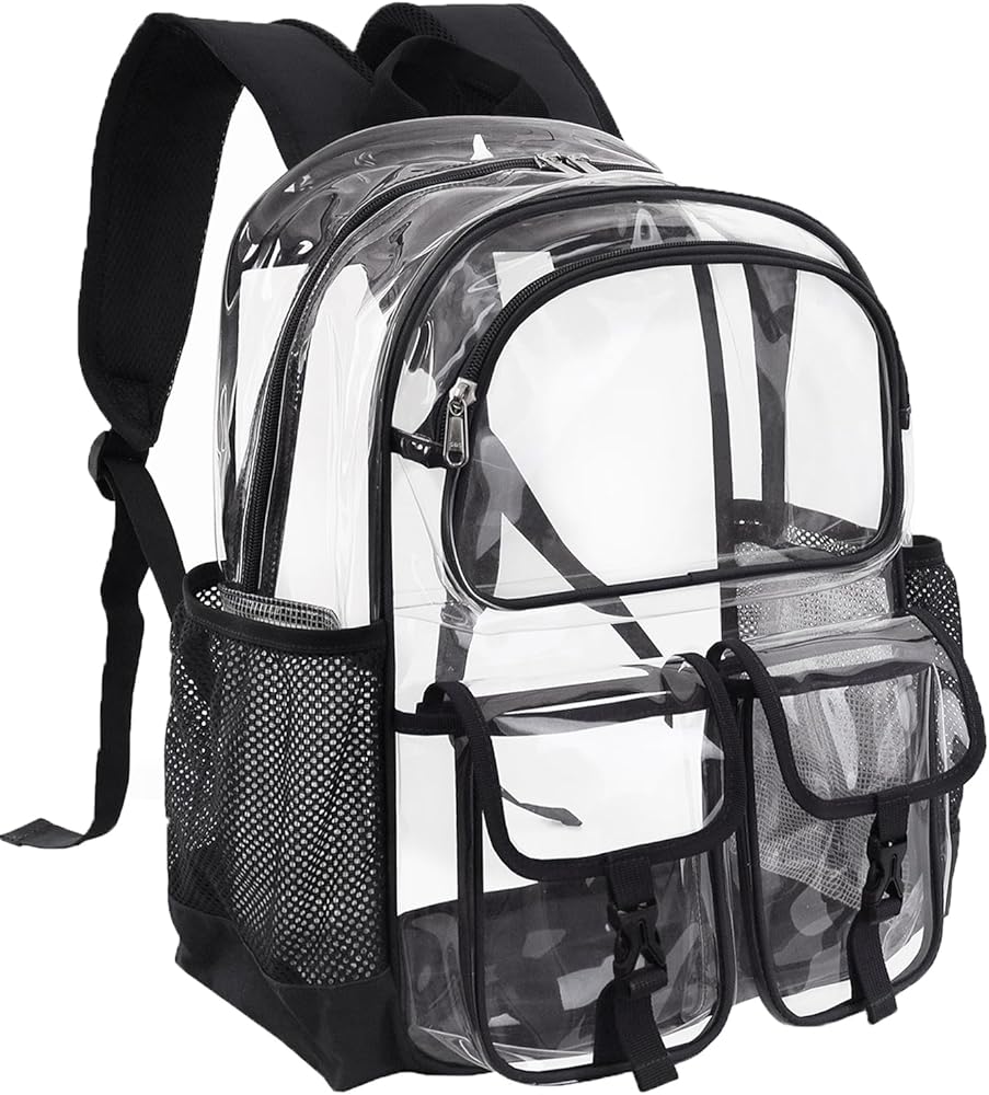 Clear Backpack Heavy Duty : Made from heavy-duty, thick 0.6mm PVC material transparent backpack is designed for school, work, and daily use. See through backpack it can withstand daily wear and tear