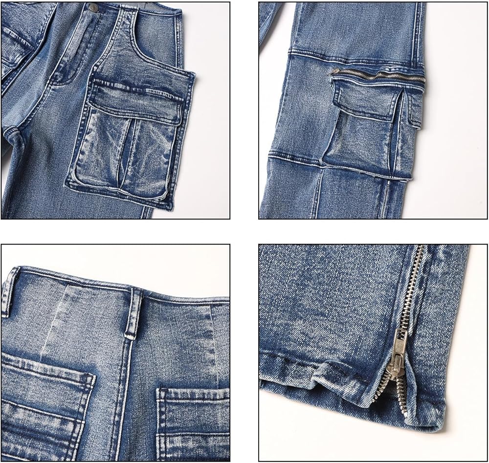 Zip Side Slit: The womens jeans are designed to zipper up on both sides, with zipper side slits for a modern look and the ability to customize the leg openings of the cargo denim pants for different occasions or personal preferences