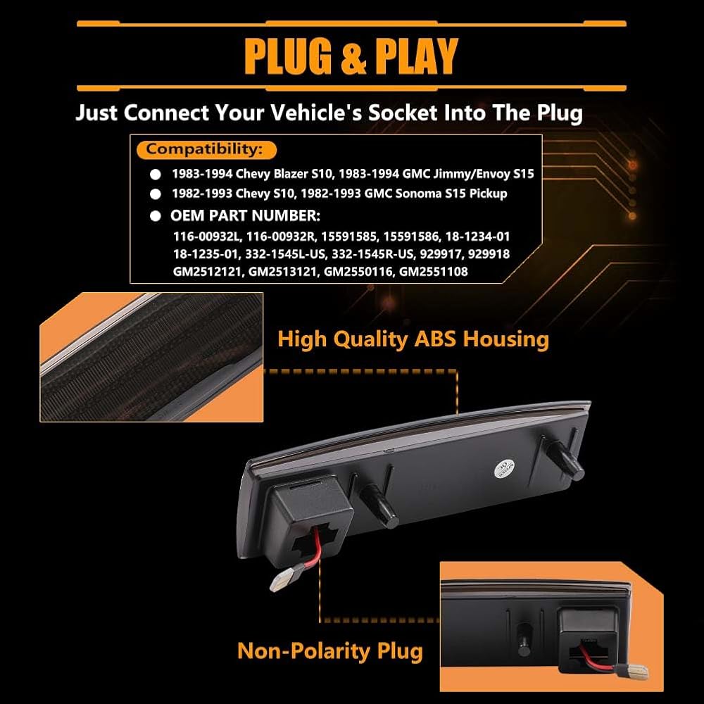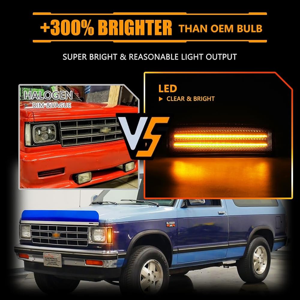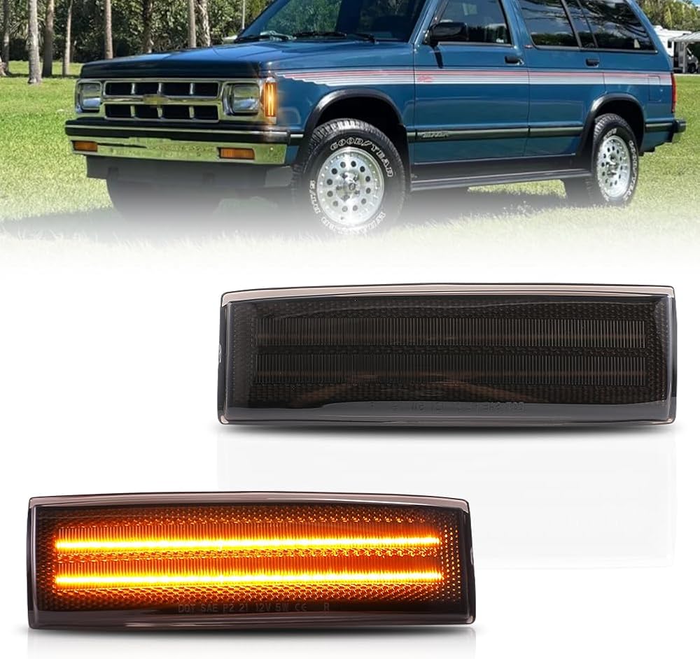 Front Fender LED Side Marker Lights for 1983-1994 Chevy Blazer S10 GMC Jimmy S15, Blazer Smoked Lens Side Bumper Marker Lamps, [Ultra-Bright] Amber LED Side Markers Turn Signal Lights, 2 PCS