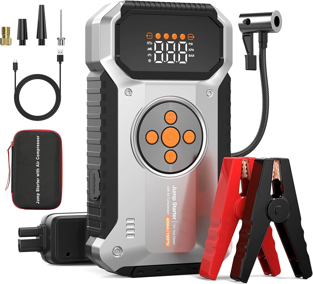 Car Jump Starter with Air Compressor, 4000A Jump Starter (All Gas/9L Diesel), 12V Car Battery Jump Box with 150 PSI Tire Inflator, 3 Modes Flashlight, Jumper Cables, Storage Case in Kuwait Car Jump Starter with Air Compressor, 4000A Jump Starter (All Gas/9L Diesel), 12V Car Battery Jump Box with 150 PSI Tire Inflator, 3 Modes Flashlight, Jumper Cables, Storage Case in Kuwait Car Jump Starter with Air Compressor, 4000A Jump Starter (All Gas/9L Diesel), 12V Car Battery Jump Box with 150 PSI Tire Inflator, 3 Modes Flashlight, Jumper Cables, Storage Case in Kuwait Car Jump Starter with Air Compressor, 4000A Jump Starter (All Gas/9L Diesel), 12V Car Battery Jump Box with 150 PSI Tire Inflator, 3 Modes Flashlight, Jumper Cables, Storage Case in Kuwait Car Jump Starter with Air Compressor, 4000A Jump Starter (All Gas/9L Diesel), 12V Car Battery Jump Box with 150 PSI Tire Inflator, 3 Modes Flashlight, Jumper Cables, Storage Case in Kuwait Car Jump Starter with Air Compressor, 4000A Jump Starter (All Gas/9L Diesel), 12V Car Battery Jump Box with 150 PSI Tire Inflator, 3 Modes Flashlight, Jumper Cables, Storage Case in Kuwait Car Jump Starter with Air Compressor, 4000A Jump Starter (All Gas/9L Diesel), 12V Car Battery Jump Box with 150 PSI Tire Inflator, 3 Modes Flashlight, Jumper Cables, Storage Case in Kuwait