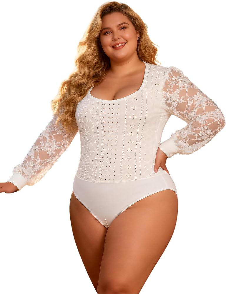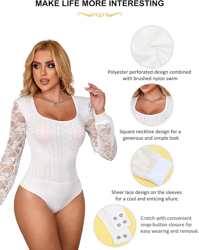 Elegant Lace Design: This sexy bodysuit features a square neckline and lace floral long sleeves, exuding feminine charm and style, suitable for any season, adding a sense of versatility to your wardrobe, whether it is casual or formal occasions