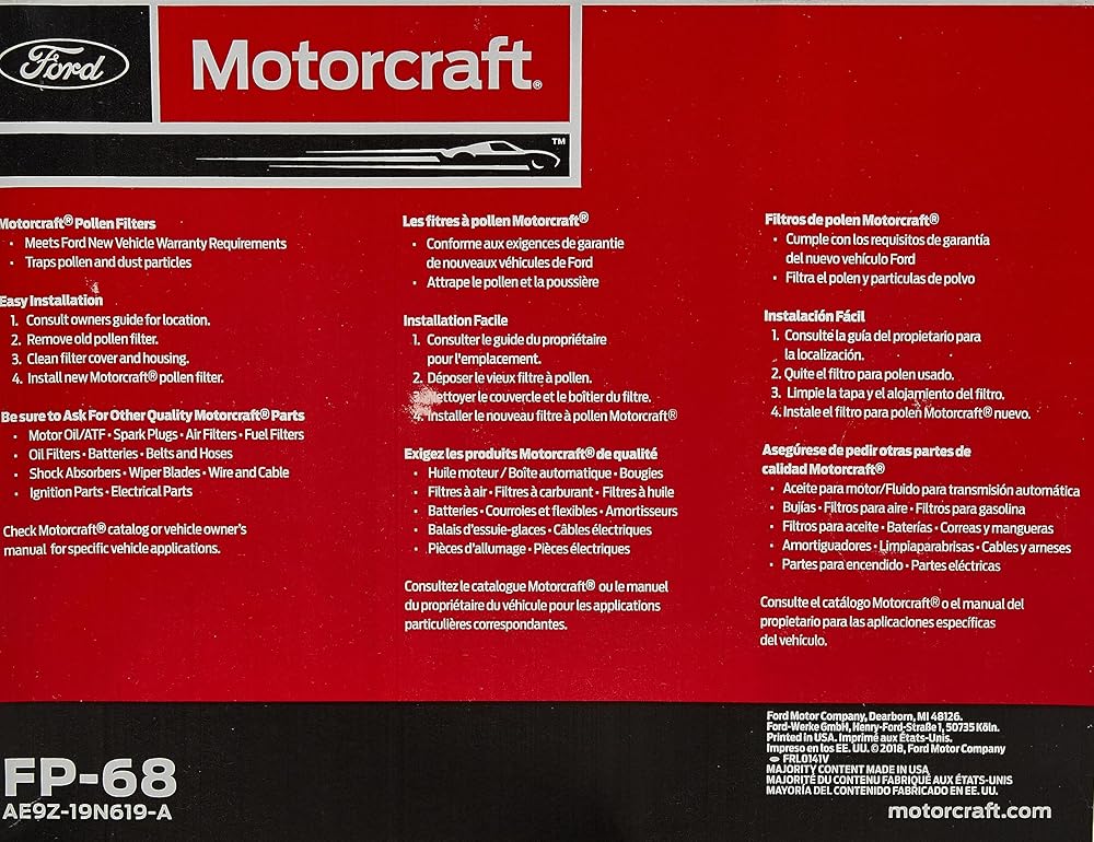 Motorcraft FP-68 Cabin Air Filter, Original Version, 1 Count (Pack of 1)