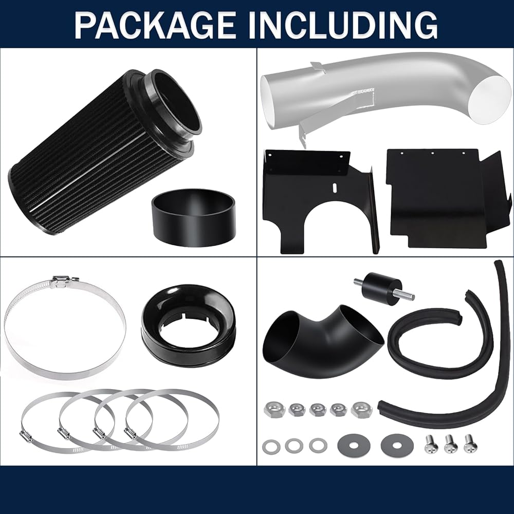 🥇【MATERIAL】New quality parts replace OEM filters and bellows. Use high-quality stainless steel buckle bolts, washers, lock nuts, and clamps, as well as high-quality silicone connectors, elbows, and hoses