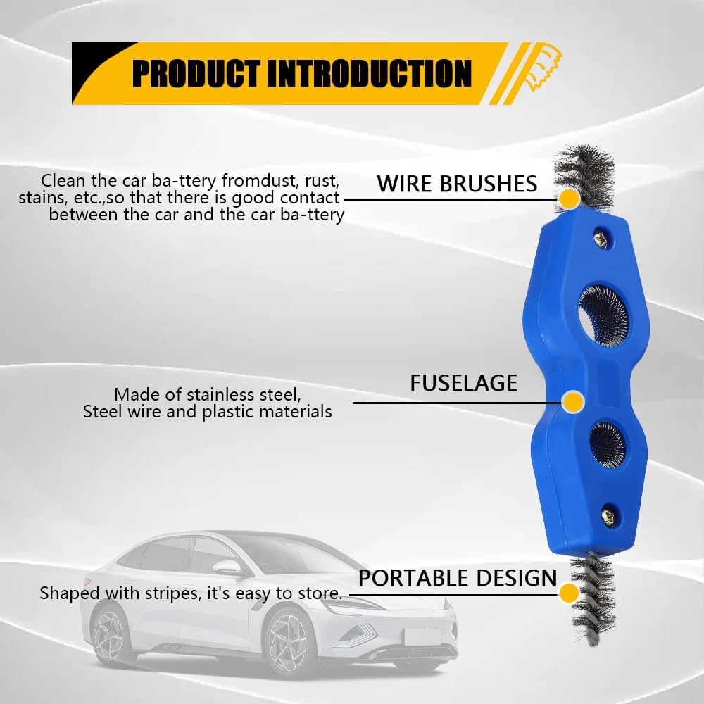 [Multiple uses] : The practical design of this wire brush for cleaning battery terminals can meet the different cleaning needs of automotive batteries, in addition to cleaning vehicle batteries, it can also be used to clean pipes, mechanical parts, steel parts, unprocessed metal parts and other items, the battery cleaner is a tool with a wide range of uses