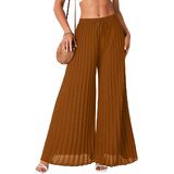 Pleated wide leg pants made of chiffon fabric,with lined, soft and comfortable to wear. Elastic waist wide leg trousers pants for women.