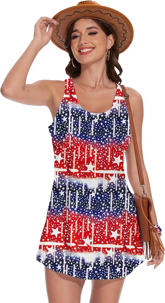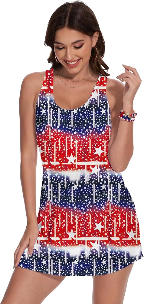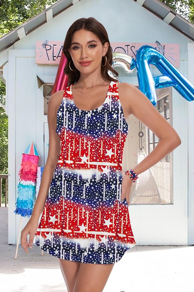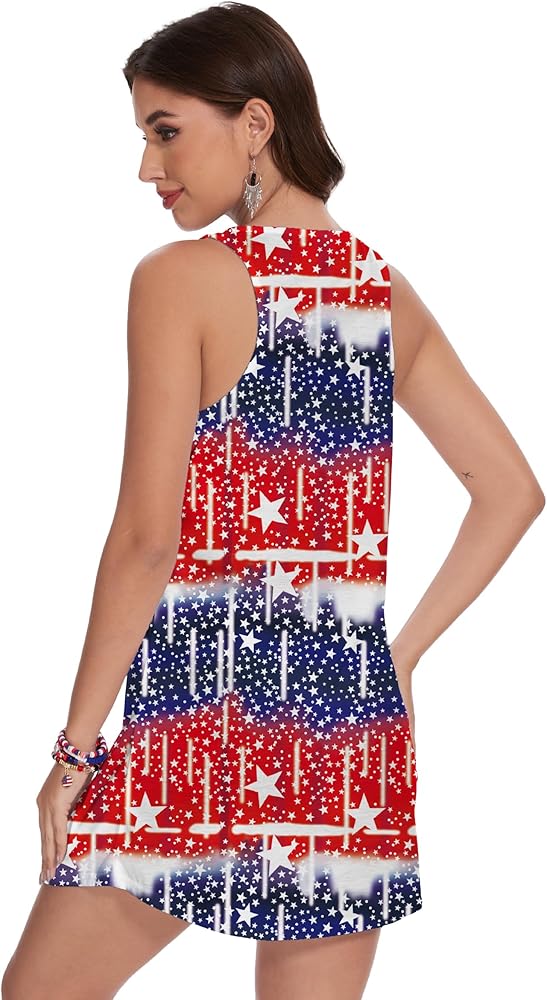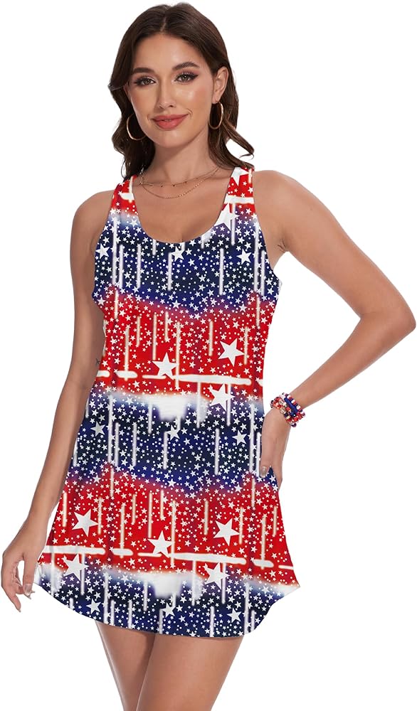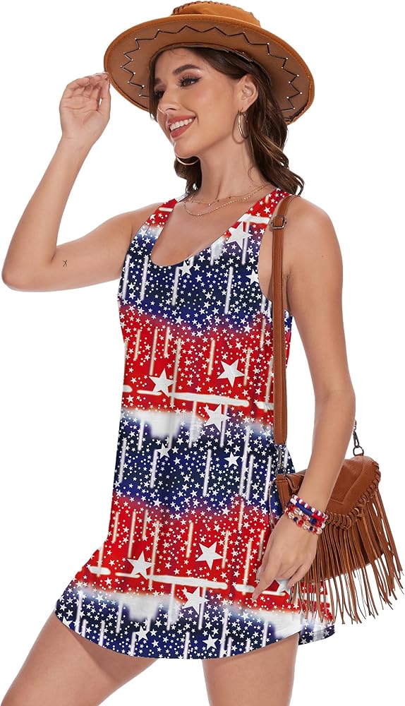 4th of July Tank Dress : Super soft, comfortable and breathable, full of elasticity. Mini tank dress make you feel lightweight, from vibrant colors to a smooth feel, the American flag dress for women must be your favorite in in independence Day or in memorial celebration day.