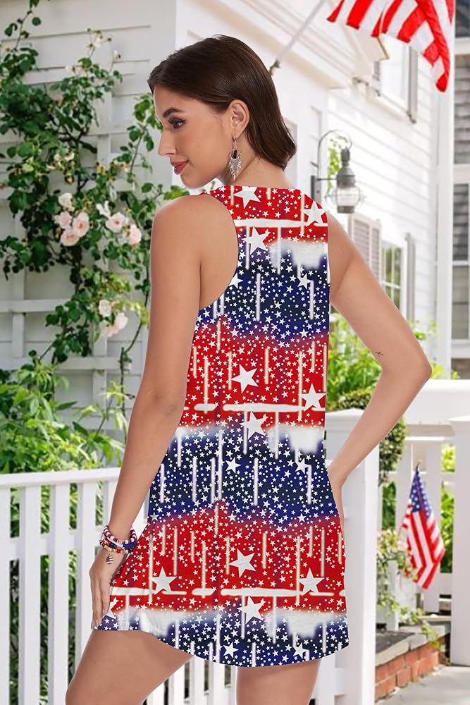 Feature : July 4th independence day memorial day V-Neck sleeveless sexy tank dresses, fashion vintage 4th of July celebration deep V-Neck mini dresses, July 4 red white and blue graphic sundresses, fourth of July stars stripes graphic tank dress, novelty funny summer red white and blue mini tank dress women, July 4 mini t-shirt sress.
