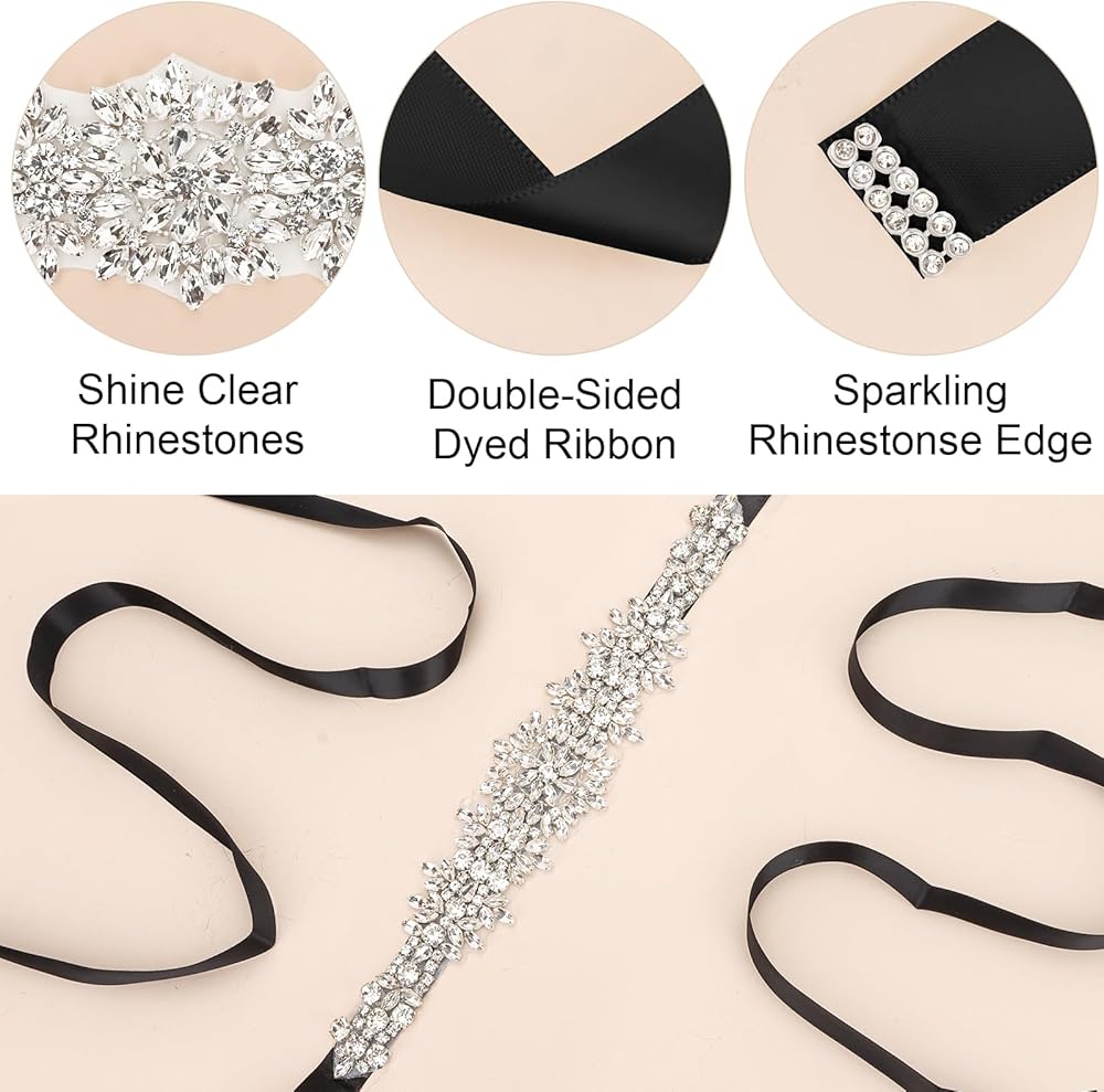 High Quality Material: The bridal belt is made by hand sewing technique, spliced by high quality rhinestones and ribbons, not easy to fade, rust, discolouration, corrosion, able to maintain the luster, specially made for dress accessories.