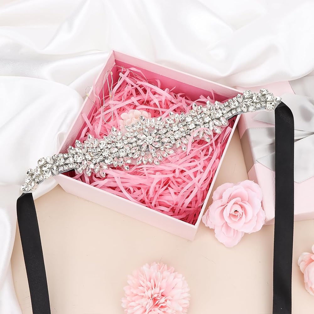 Adjustable Size: Crystal bridal belt rhinestone part measures 7.67 x 1.96", ribbon measures 100 x 0.78". The length can meet all kinds of bridal figures and you can tie a bow with the ribbon.