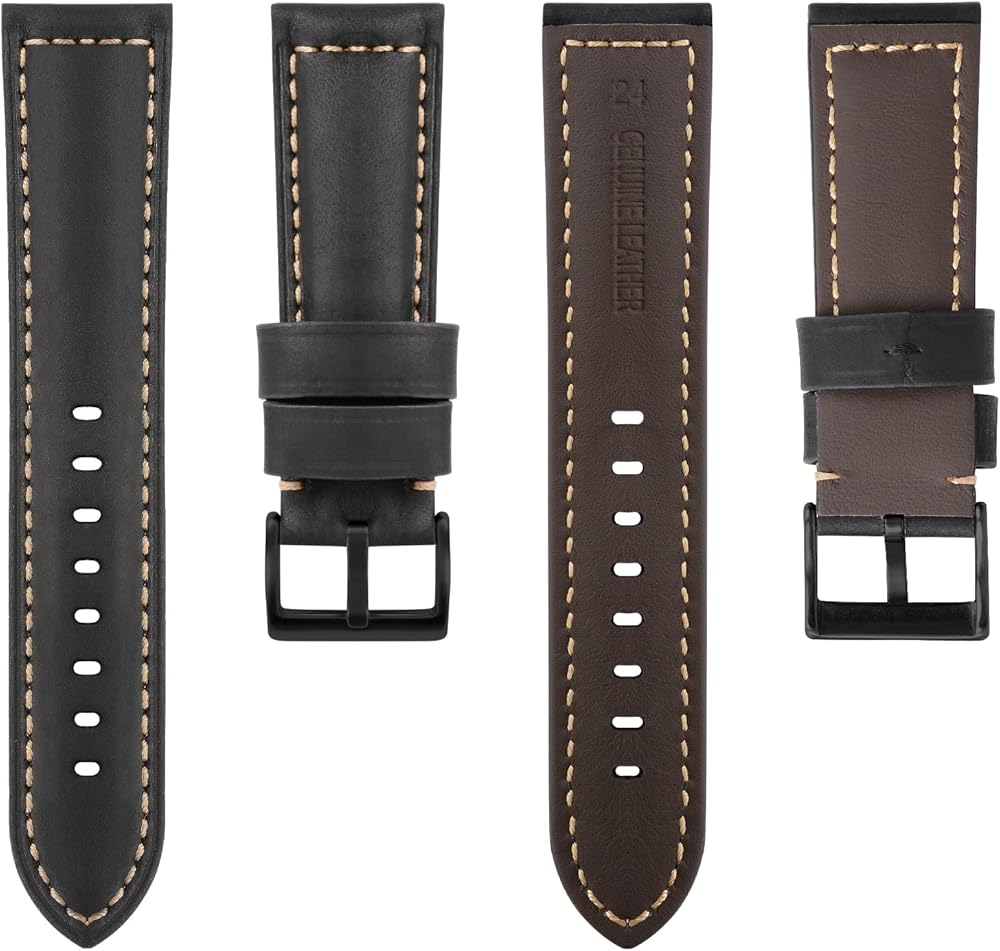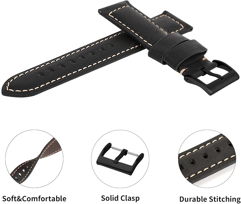 GREATER COMPATIBILITY: The width of the leather watch strap is 20mm, 22mm, and 24mm, suitable for most traditional and smart watch. It comes in four colors: black, brown, blue and dark brown, and two 316 stainless steel buckle colors (black, silver), can be matched with various styles of clothing and suitable for various scenes, such as business, meetings, sports, shopping, mountain climbing, etc.