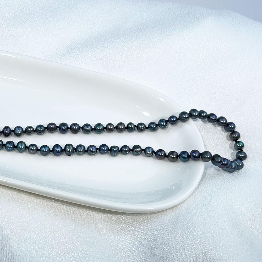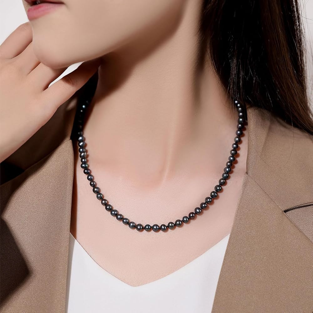 SIMPLICITY AND TIMELESS: It's a simple design featuring a row of lustrous nearly round black pearls with 925 silver clasp. Perfect for dressing up a casual outfit or finishing an evening ensemble.