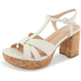 Comfortable mid-height t-shrap platform sandal with buckle entry.