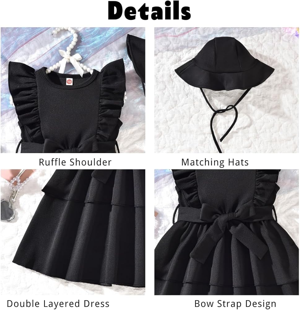 Solid Color Design: Classic summer ruffle sleeve with layered dress design. Little matching sun hat is included. It looks especially cute on hot summer! Every detail is designed for the toddlers, giving baby free space to grow up