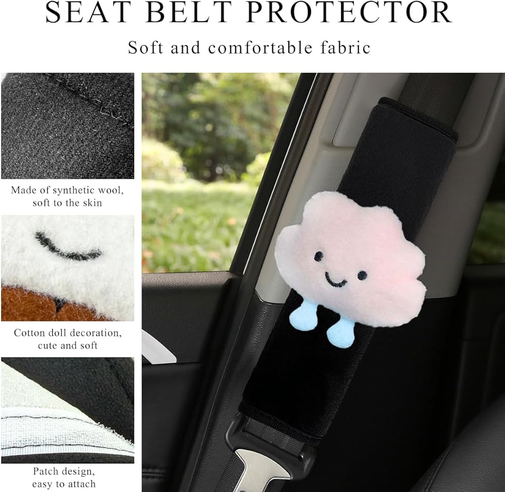 【Charming Design】: Featuring an adorable cartoon smiley face cloud pattern, this seat belt protector makes an eye-catching and fun decoration for your vehicle. Its fun design adds personality to your vehicle while remaining practical and functional.