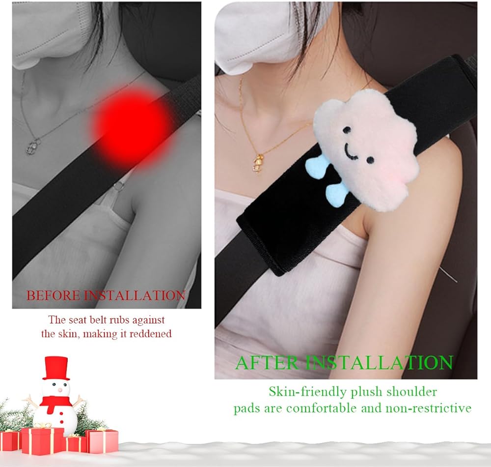 【Effective Protection】: This seat belt protector provides essential protection while driving, effectively cushioning the impact of the seat belt during rapid deceleration. The plush helps absorb shock and reduces pressure on the neck and shoulders, ensuring a safer ride.