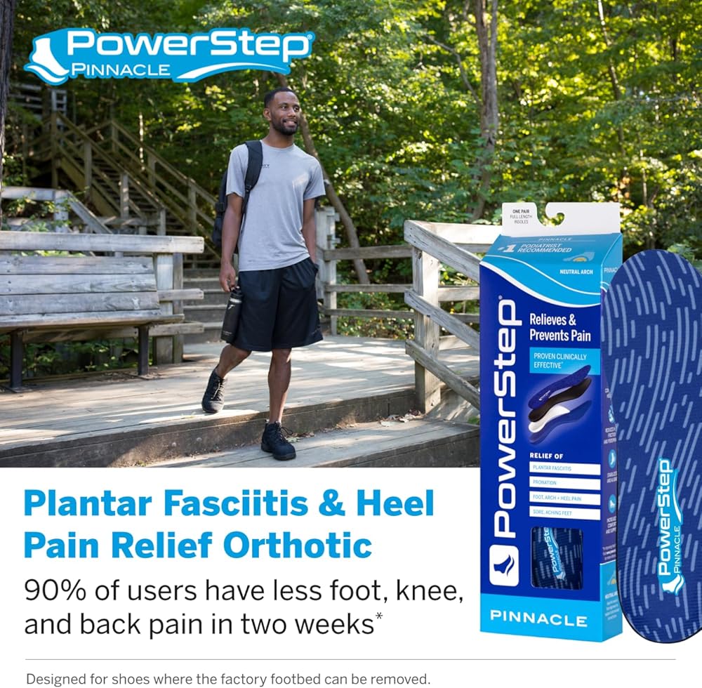 RELIEVES AND PREVENTS PAIN: PowerStep Pinnacle can help alleviate pain associated with common foot, ankle, hip, knee and back pain or pain from conditions caused by Plantar Fasciitis and Achilles Tendonitis.