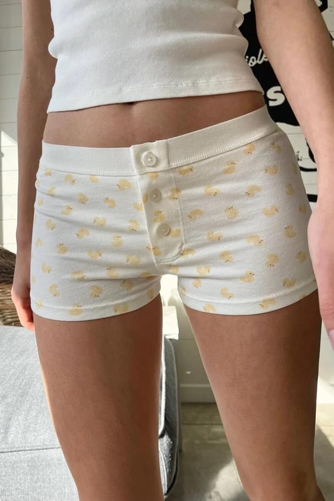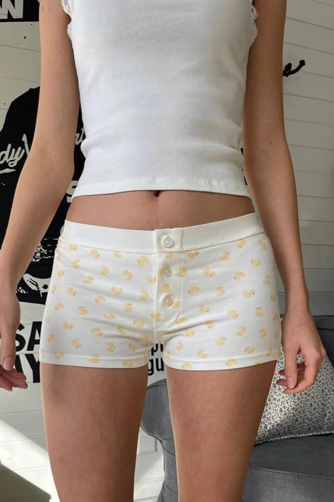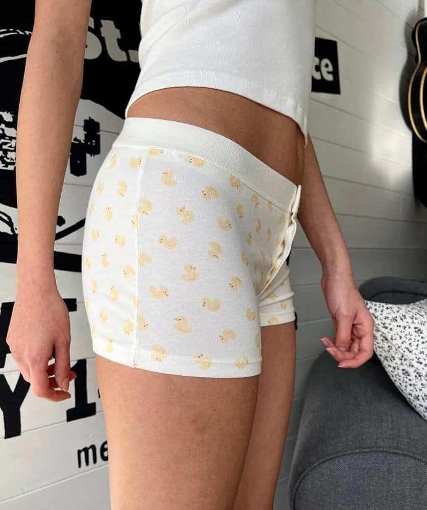 Women Y2K Mini Lounge Shorts Floral Low Waist Micro Shorts Graphic Fitted Boy Shorts Cute Pajama Bottoms