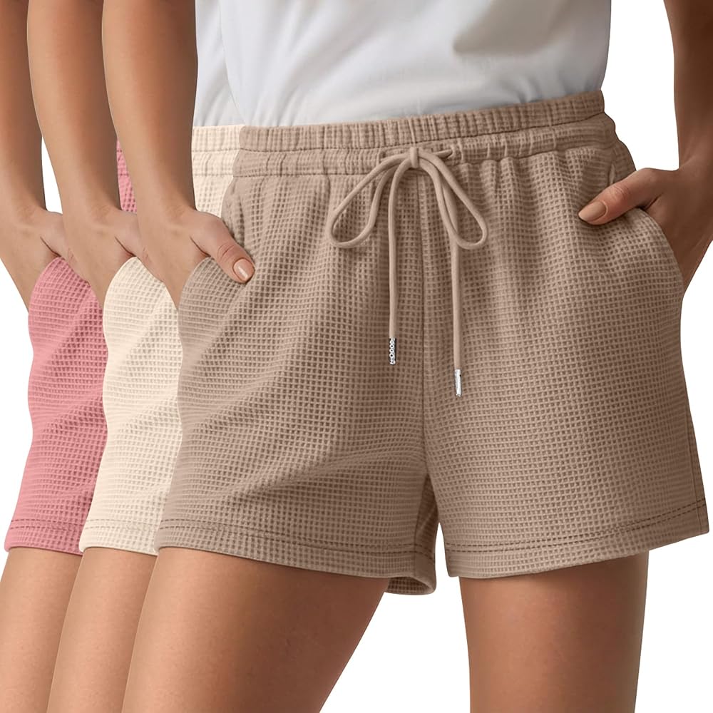 Practical Design: our women's waffle shorts feature high waist, loose fit, adjustable drawstring, and pocket design, fits the body and is not easy to slip off, fashionable and practical