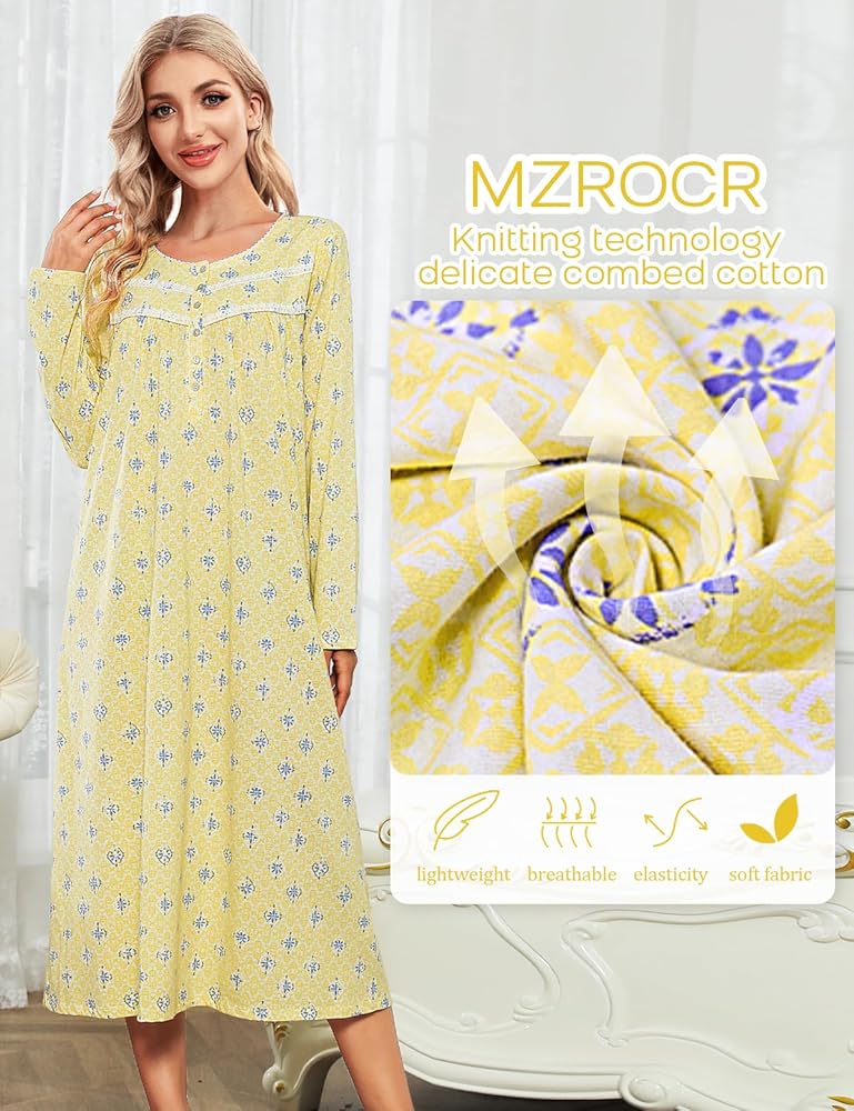 Women's nightgowns that can be worn in many scenes:This is a nightgown that can be used for living and entertaining. You can wear it to work at home, walk your dog outside, enjoy afternoon tea in the garden and so on. This women's long sleeved pajama is the perfect gift for mother, girlfriend, wife or friend. This casual women's nightgown is the best choice.