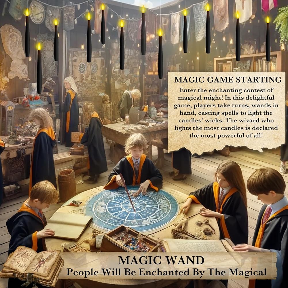 START YOUR WAND SKILL CAMP: Our creative wands offer a unique way to practice magical abilities with floating candles. By keeping practice your wand skills, you can light up additional candles. Decorated in your movie classroom,this provides a enchanting space for children to stimulate imagination and compete who to become the most powerful wizard. Tips, holding down the wand button lets you slow down spell for better illuminating more candles.Celebrating your graduation from magic school