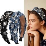 4 th of July Headbands for Women Girls American Wide Knottted Headband USA Blue Star Rhinestone Patriotic Headbands Crystal Jeweled Hairband Hair Accessories