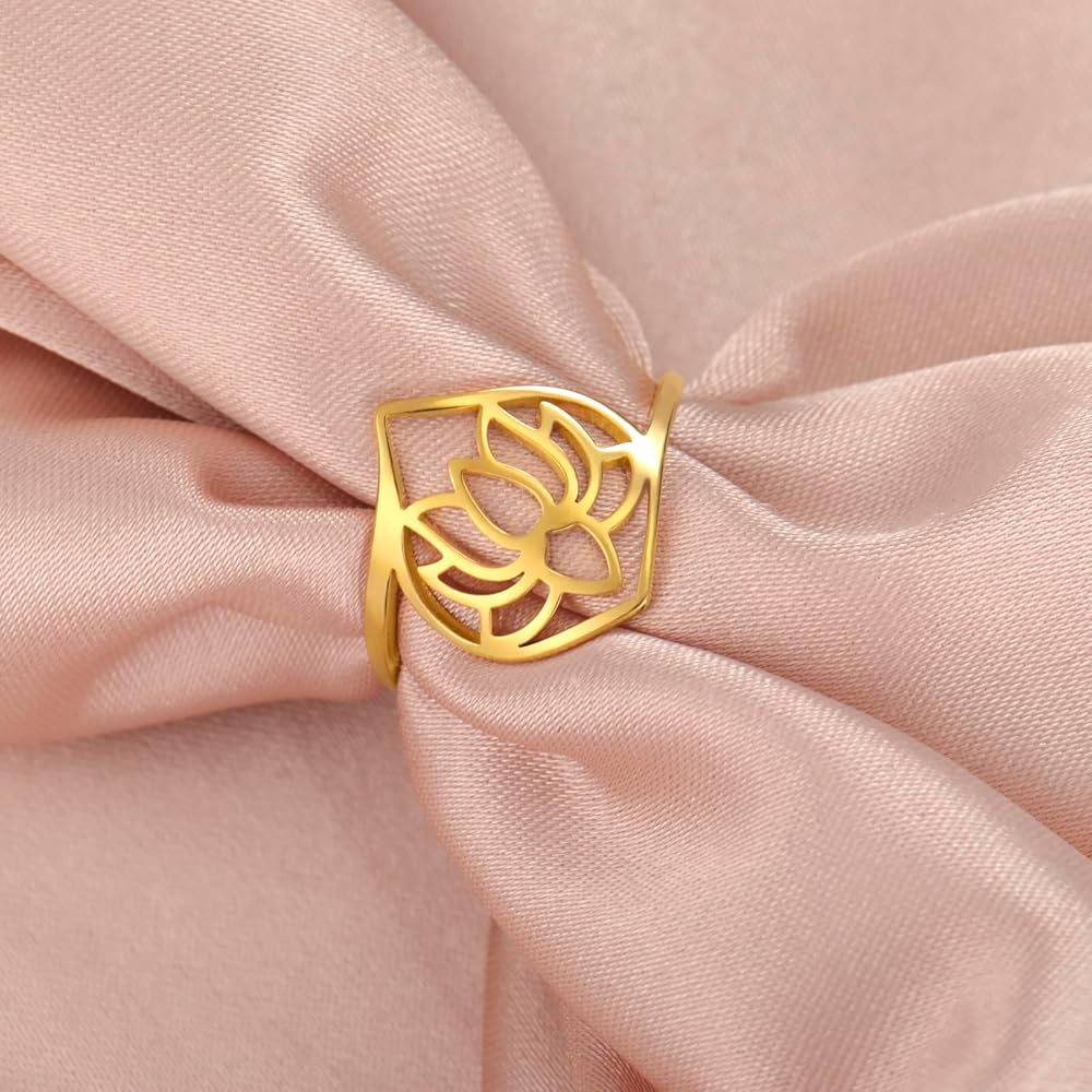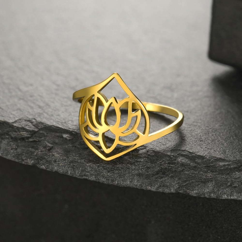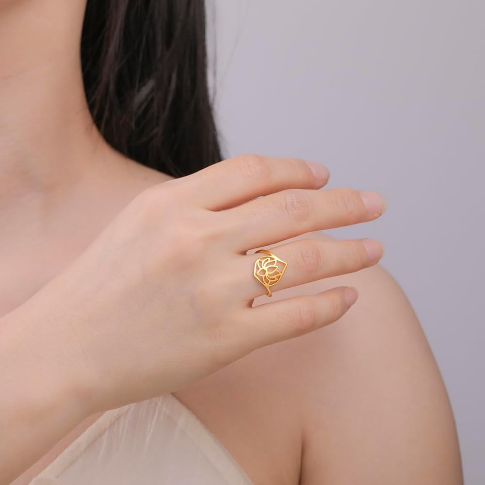 Stainless Steel Lotus Ring, It is suitable for any occasion and can be easily matched with any clothing. It is your daily fashion item. Maintenance tips: 1. Keep away from sweat, bleach and any other chemicals; 2. Please remove the jewelry before exercising, swimming, showering, cleaning, makeup and lotion; 3. Regular cleaning and wearing silver jewelry will help maintain its luster.
